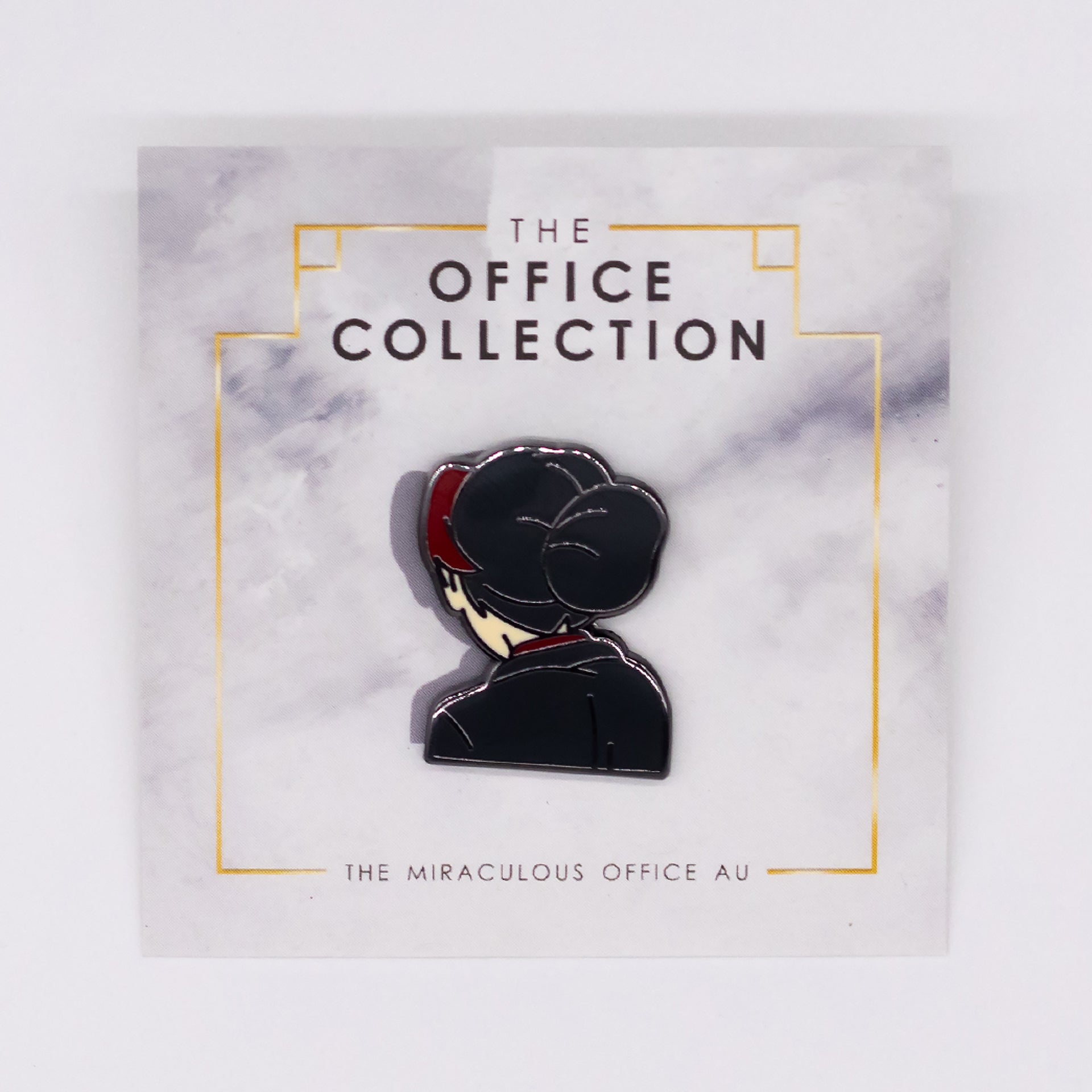 This 1" (2.54cm) hard enamel pin features Nathalie in her signature head-against-wall pose from the ML Office AU opening.