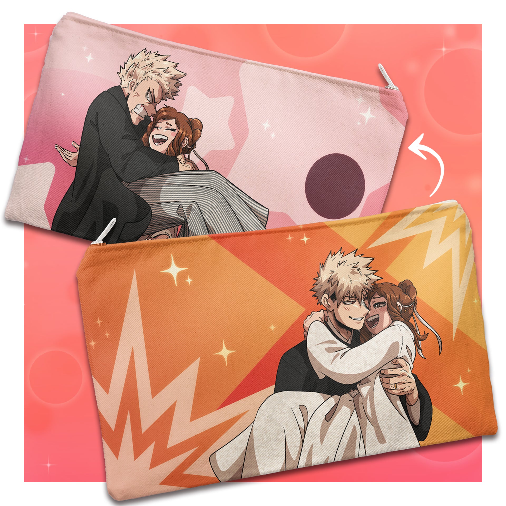 What a joyous occasion, behold a Kacchako wedding on our double-sided pouch by emzurl! Measuring in at 5" x 8.25", this zippered pouch can hold all your essential needs (probably, maybe).